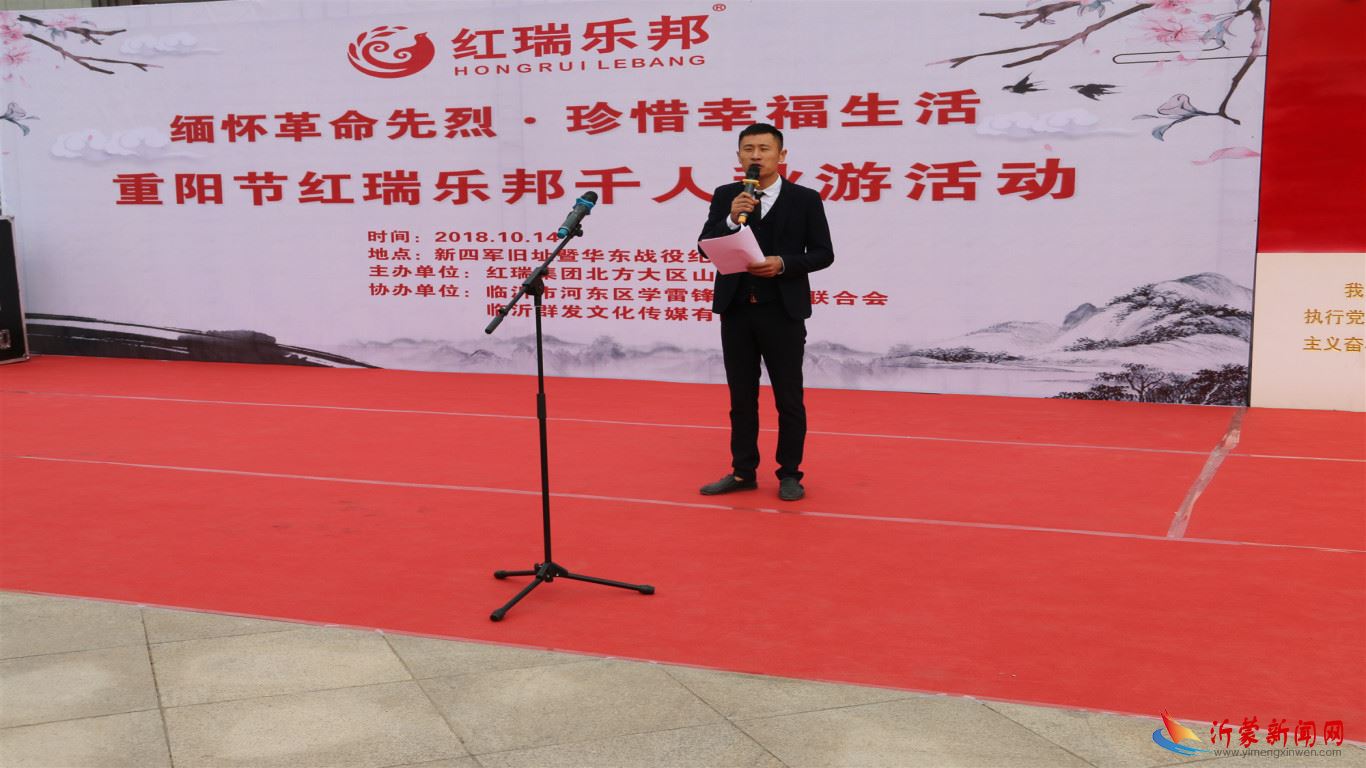 10月14日,“缅怀革命先烈,珍惜幸福生活”,九九重阳节来临之际,红瑞集团北方大区山东公司组织千余名老人秋游活动。当日上午,大家集体来到了位于河东区的新四军旧址暨华东野战军战役纪念馆,观看了战役旧址,瞻仰了革命先烈当年的英雄事迹。随后观看了精彩的演出。原临沂市政协副主席颜廷瑞,临沂市爱心联合会会长李波,红瑞集团北方大区副总经理、山东公司总经理刘建勇,红瑞集团北方大区山东公司市场总监赵恒军,红瑞集团北方大区山东公司临沂片区经理王飞女士,河东区学雷锋志愿者联合会会长 朱孟花 以及雷锋志愿者团队,社会有关领导及媒体人士参加活动。