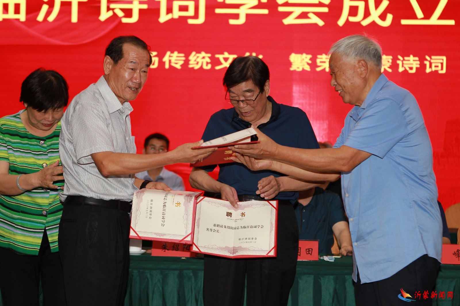 大会聘请朱绍阳、王军平、马德仁、杨荣三、徐福田为临沂市诗词学会名誉会长,高明、申作信、刘晓霞、王精华为临沂市诗词学会顾问。