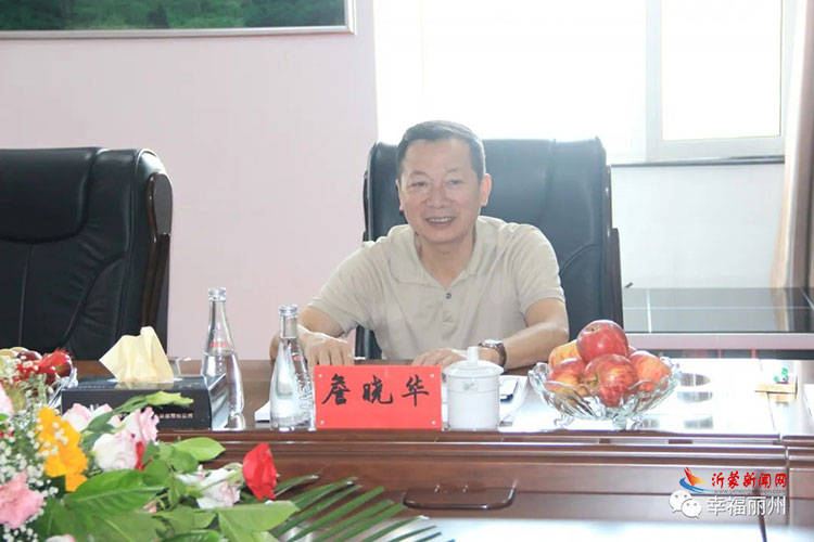 2020年7月25日上午,上饶城投集团党委书记、董事长詹晓华一行莅临临沂丽州集团进行考察指导。首先到临沂丽州公司会议室进行了亲切座谈,丽州集团董事长翁明海对上饶城投集团董事长詹晓华一行前来公司考察表示热烈欢迎,同时对考察团不远千里前来临沂考察表示衷心感谢。