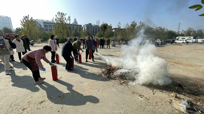 随后,社区宣传员现场演示了各类灭火器的使用方法,重点对常用干粉灭火器进行讲解,并通过模拟发生火灾现场应急演练的方式,进一步消除从业人员及居民对火灾的恐惧心理,提高面对突发火灾的自防自救能力。并对辖区内单位消防设施设备情况、灭火器材是否符合要求、消防通道是否畅通、消防巡查制度是否落实进行了督导检查。