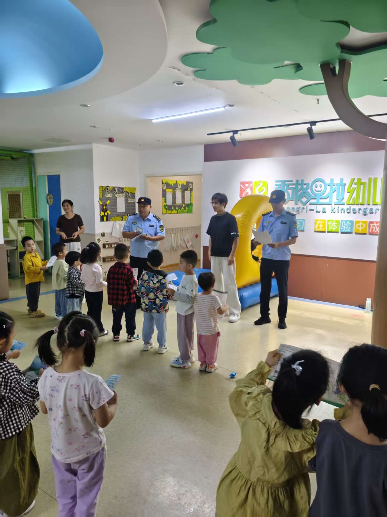 接着,安全员模拟火灾场景,教孩子们如何正确应对。“发生火灾不要慌,用湿毛巾捂住口鼻,弯腰低姿迅速撤离。”孩子们认真聆听,还不时举手提问,现场气氛热烈。